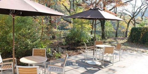 大浴場横、湯上り処に隣接する爽やかな風が吹きぬける屋外テラス。
