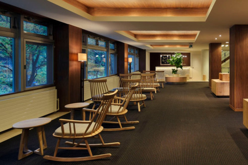 湯桧曽川を望むロビーからの風景に心癒されます。