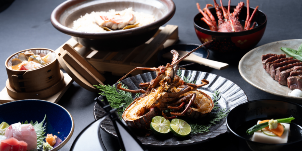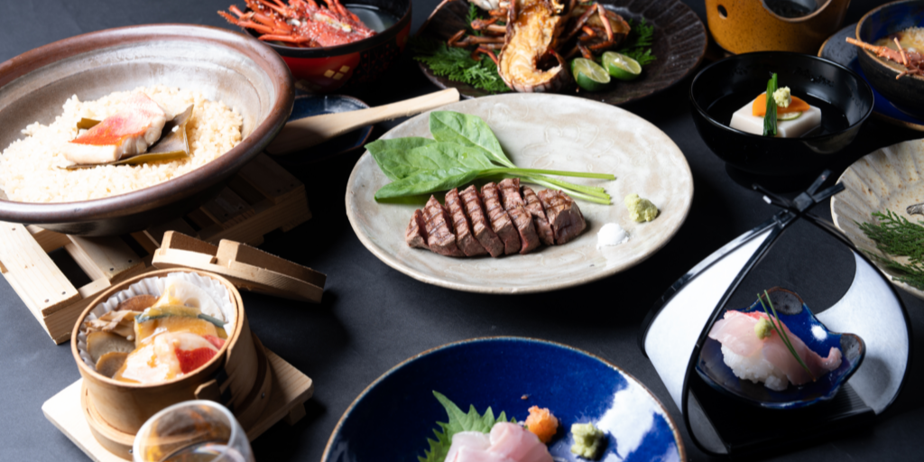 水揚げされたばかりの魚介類や山の幸、旬の持ち味を活かした懐石料理。