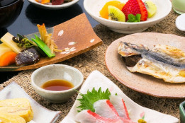 朝ごはんは伊豆の味覚をふんだんい使った、朝の目覚めにやさしい内容です。