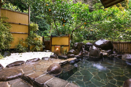 おいしい料理に舌鼓を打ち、源泉掛け流し天然温泉のやわらかなお湯に季節の風とともに楽しむ。