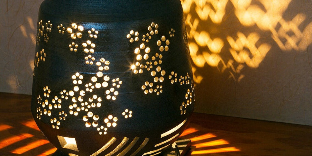 当館のお食事で使用している器や土鍋、また、お部屋や館内各所に置かれている灯りなど観ているだけでも美しい陶芸品を展示しております。