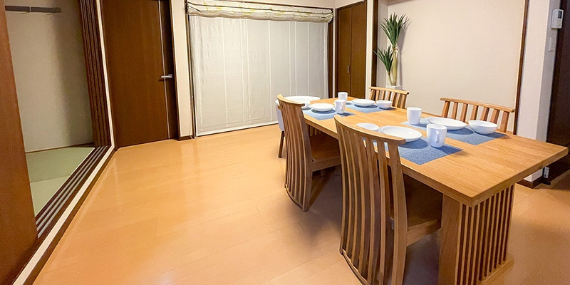 大きなリビング、ダイニングに2ベットルーム。最大10名様で広々お使い頂けます。