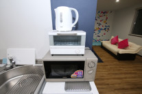 キッチン付きで調理器具・電化製品・ホットプレート・炊飯器等、揃えています。