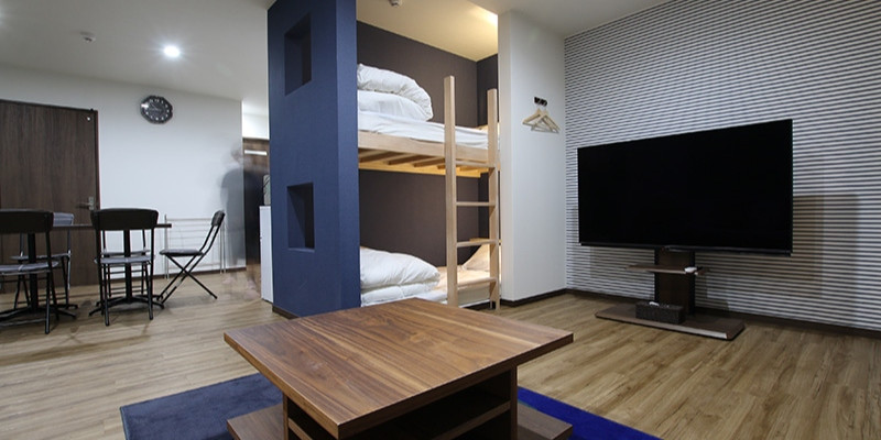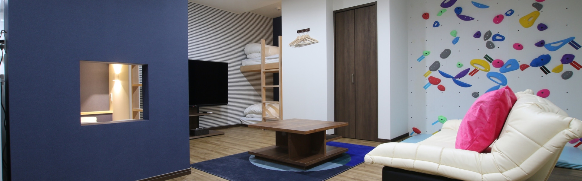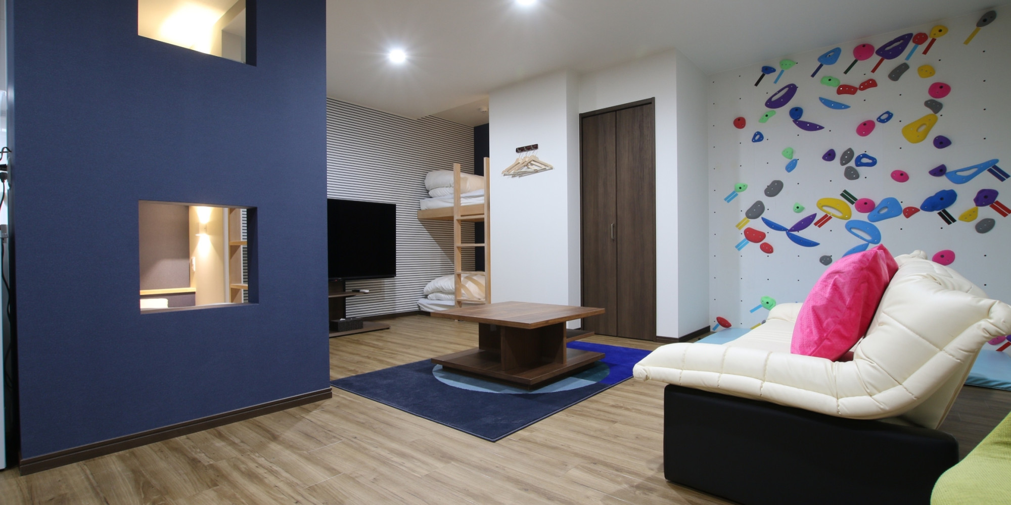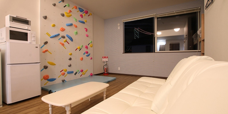 お部屋によってはクライミングウォールや最新60インチTVもございます♪