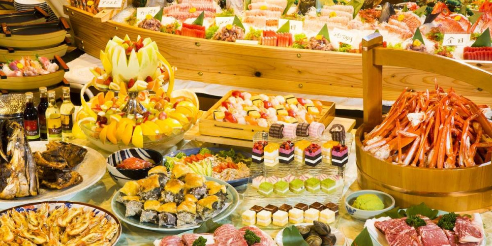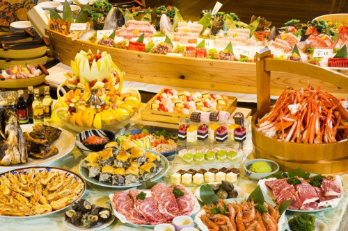 下田聚楽ホテルのレストランでは、バイキングでは「夕食では常時60品目以上、朝食でも40品目以上」を毎日の献立として掲げて、お客様の笑顔をお迎えしております。