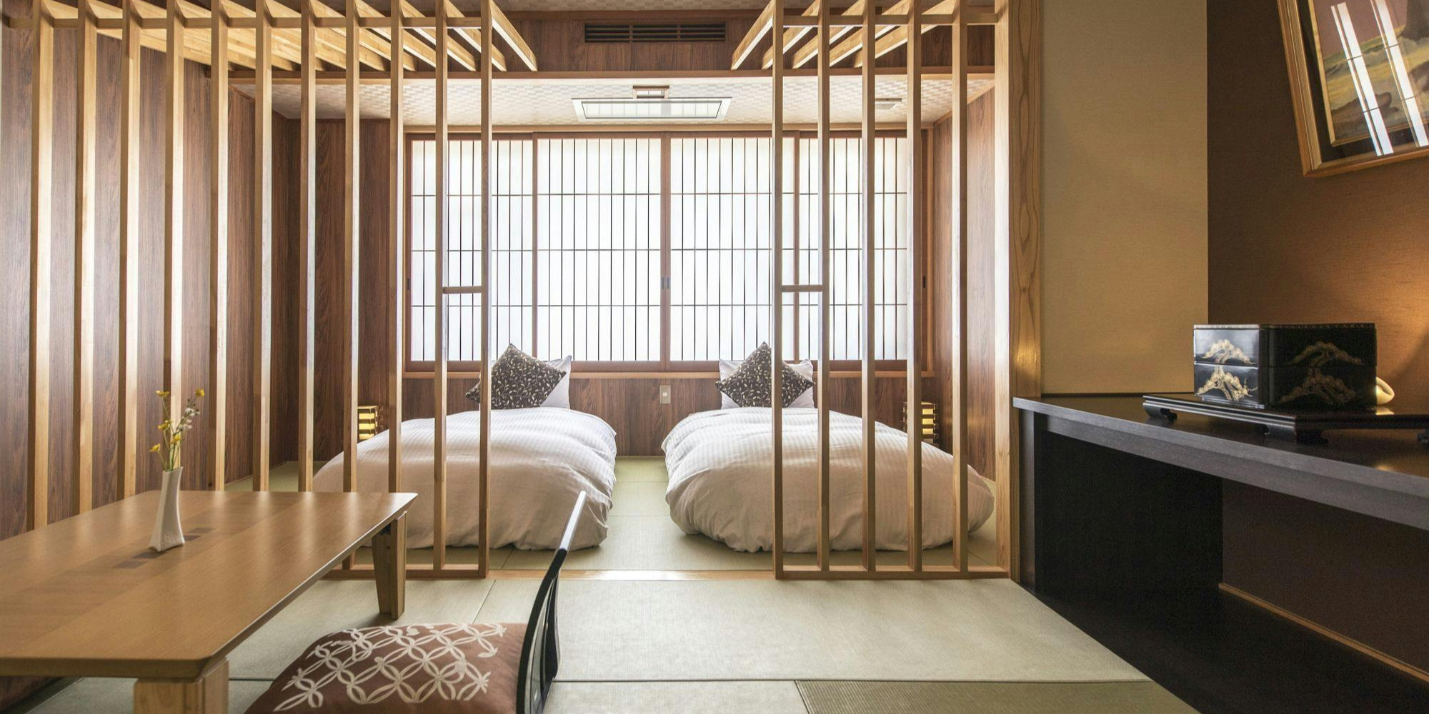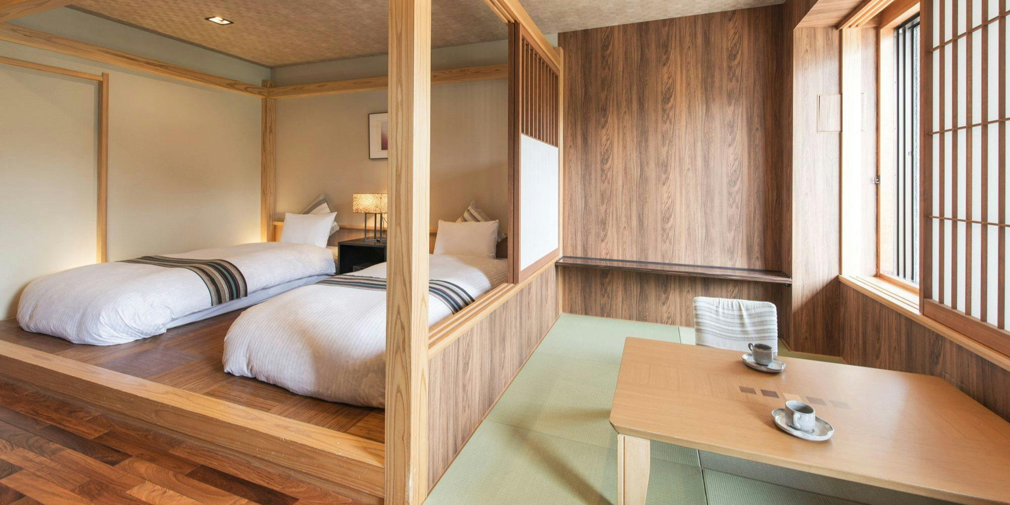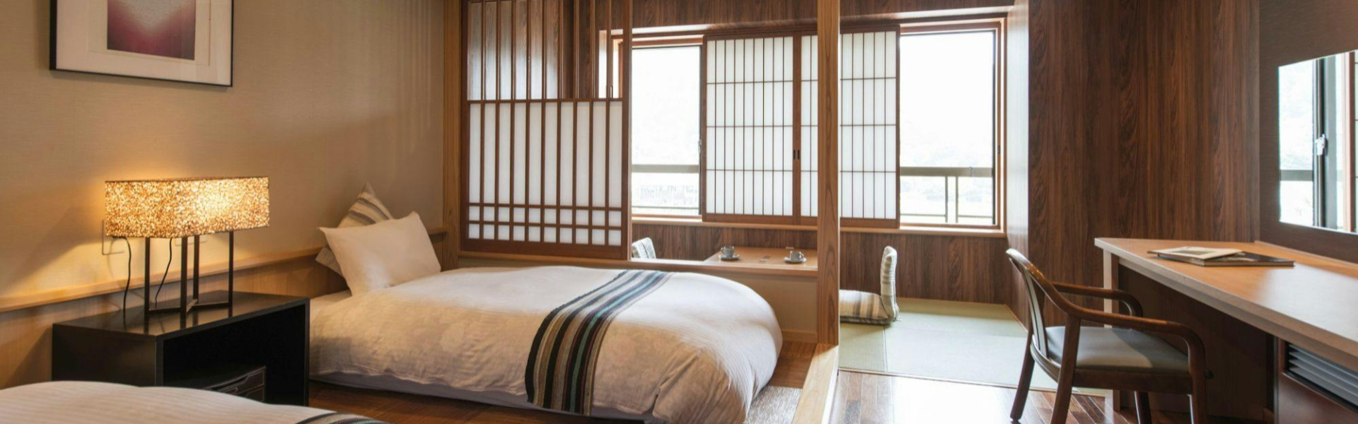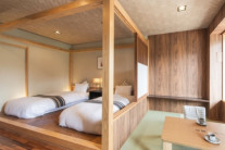 最上階に位置し、和のなごみとベッドの安らぎが融合されたお部屋。