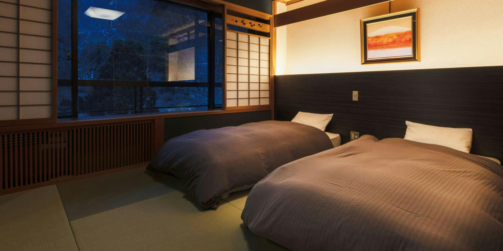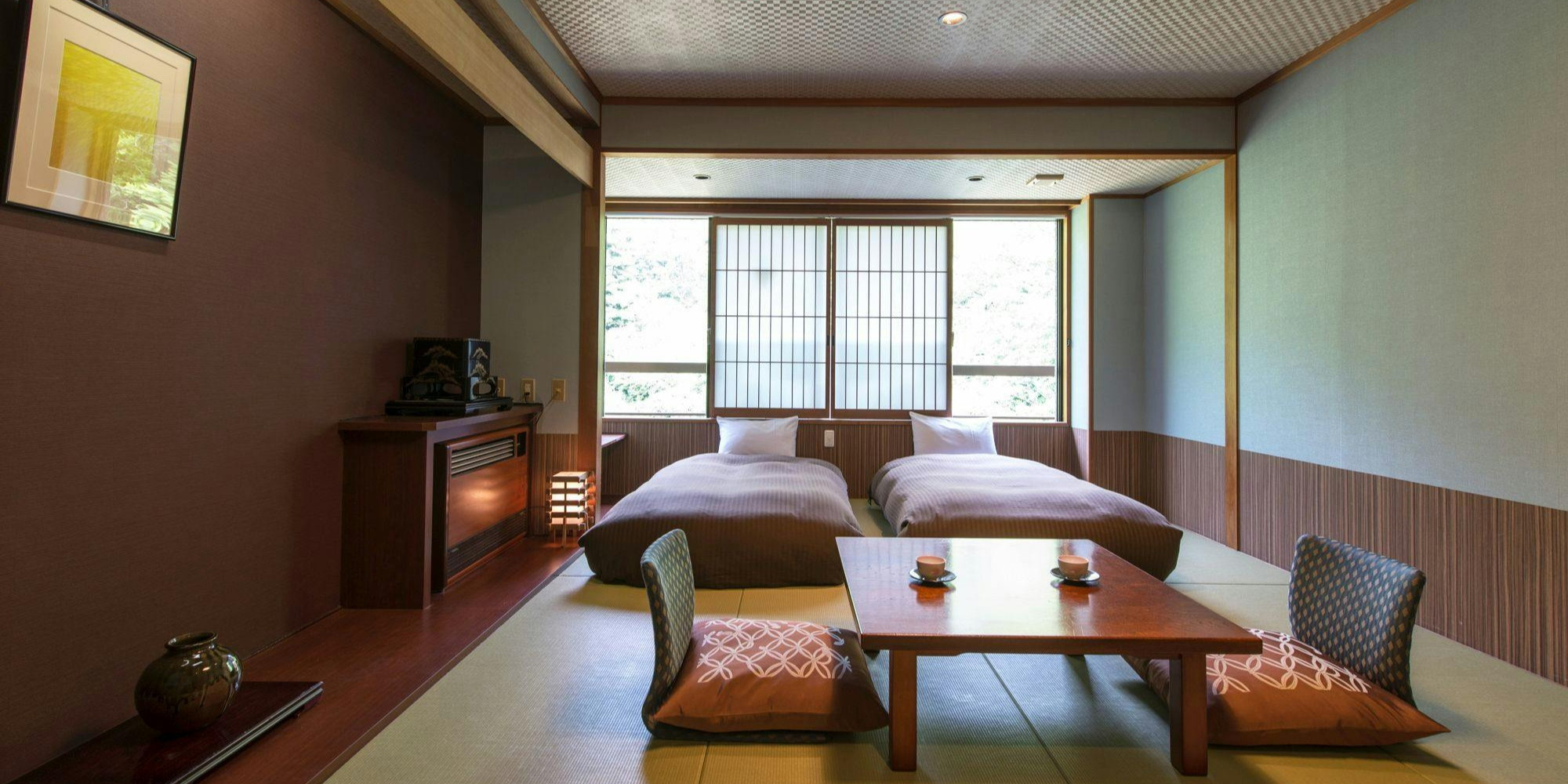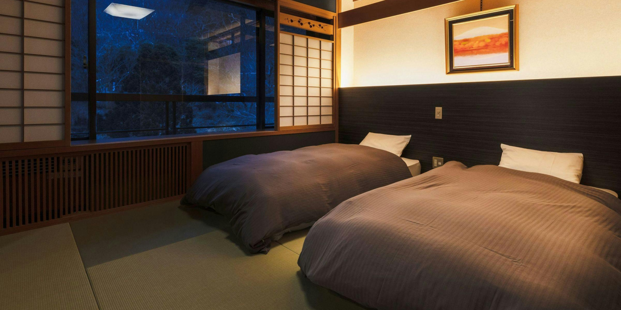 最上階に位置し、和のなごみとベッドの安らぎが融合されたお部屋。