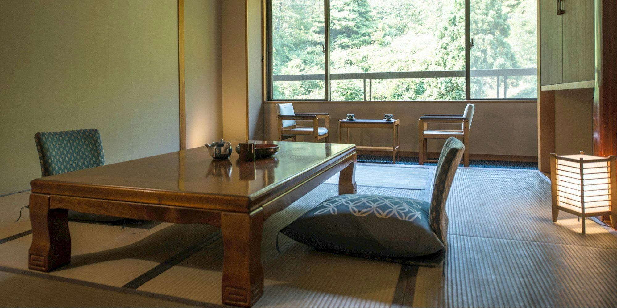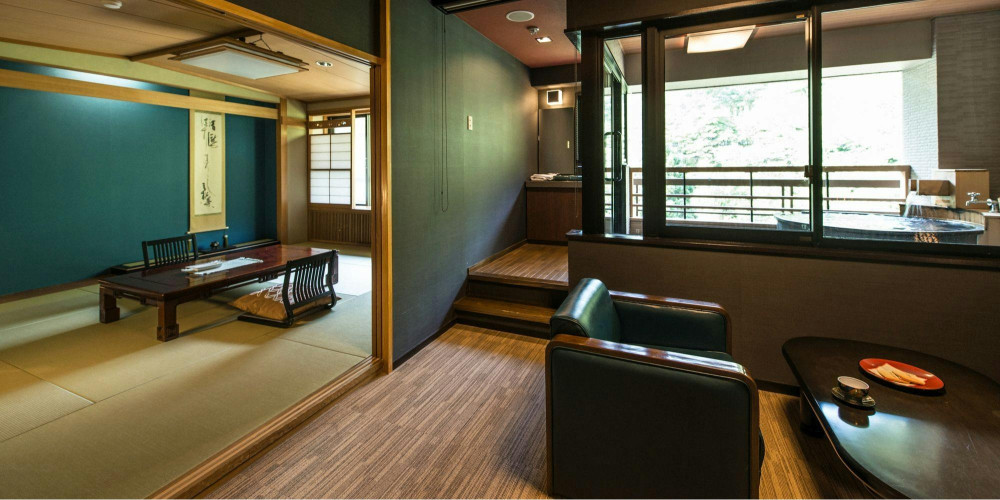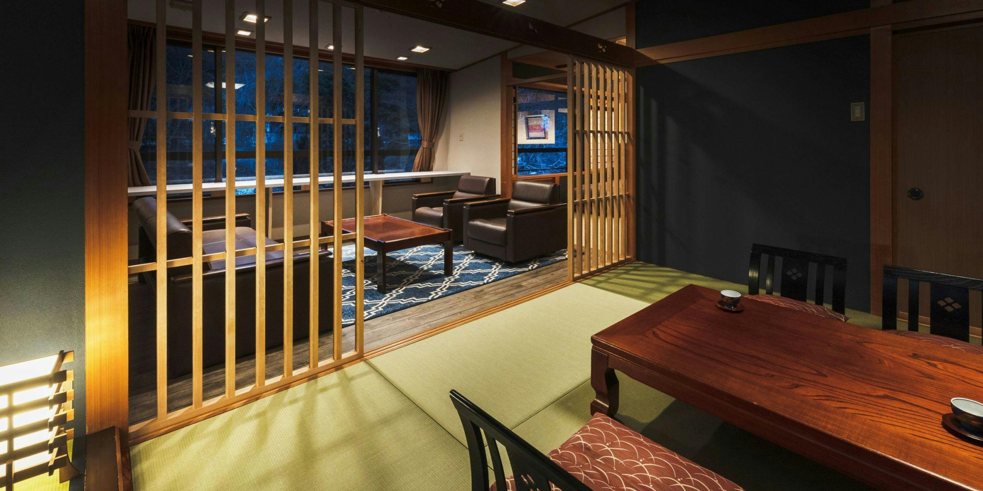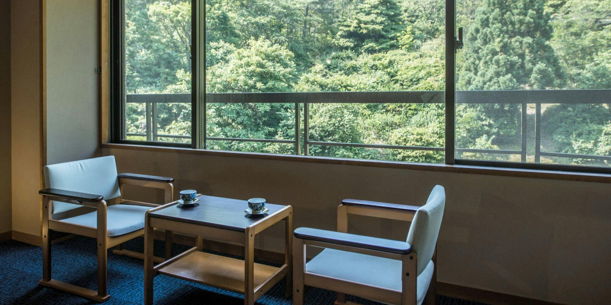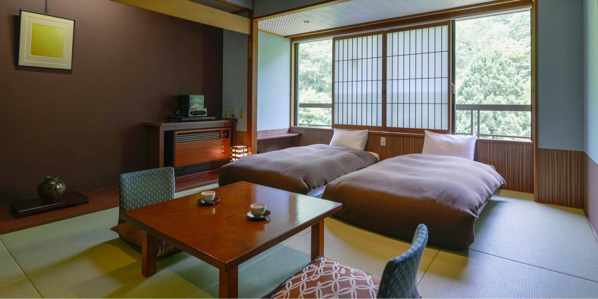 <山庭の眺望>【コーナー和スイート】リビング+和室+ベッド