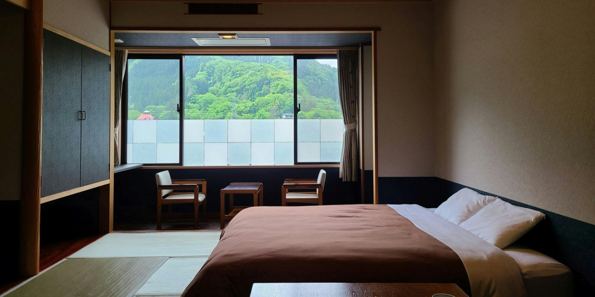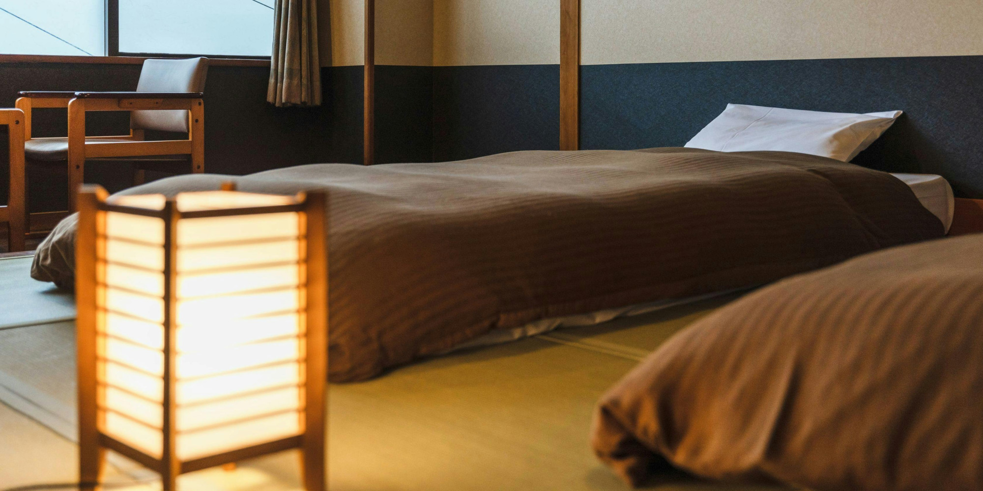 3-4階の和風客室にキングサイズのベッド1台でお休みいただけるお部屋です。