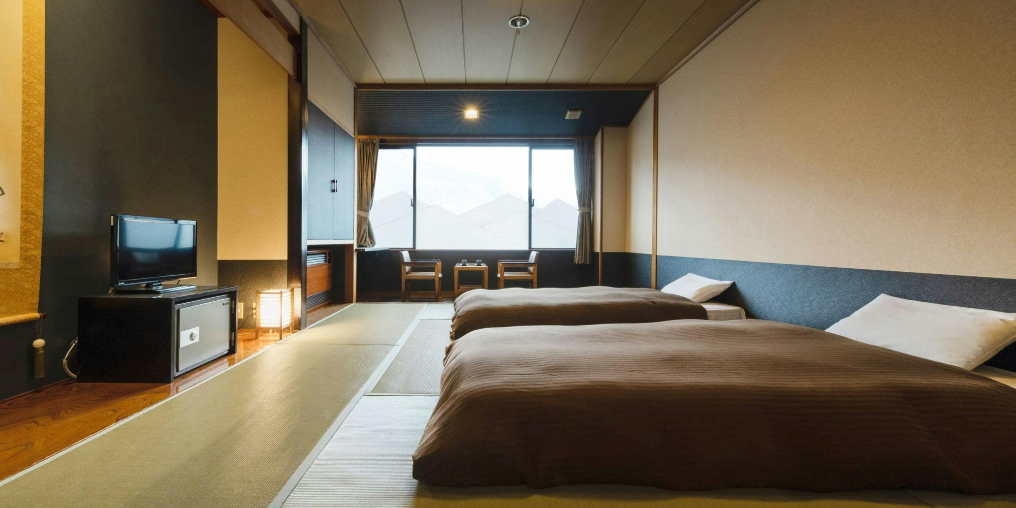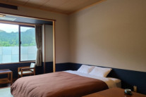 当館基本タイプのお部屋。和のなごみとベッドの安らぎが融合されたお部屋で、
