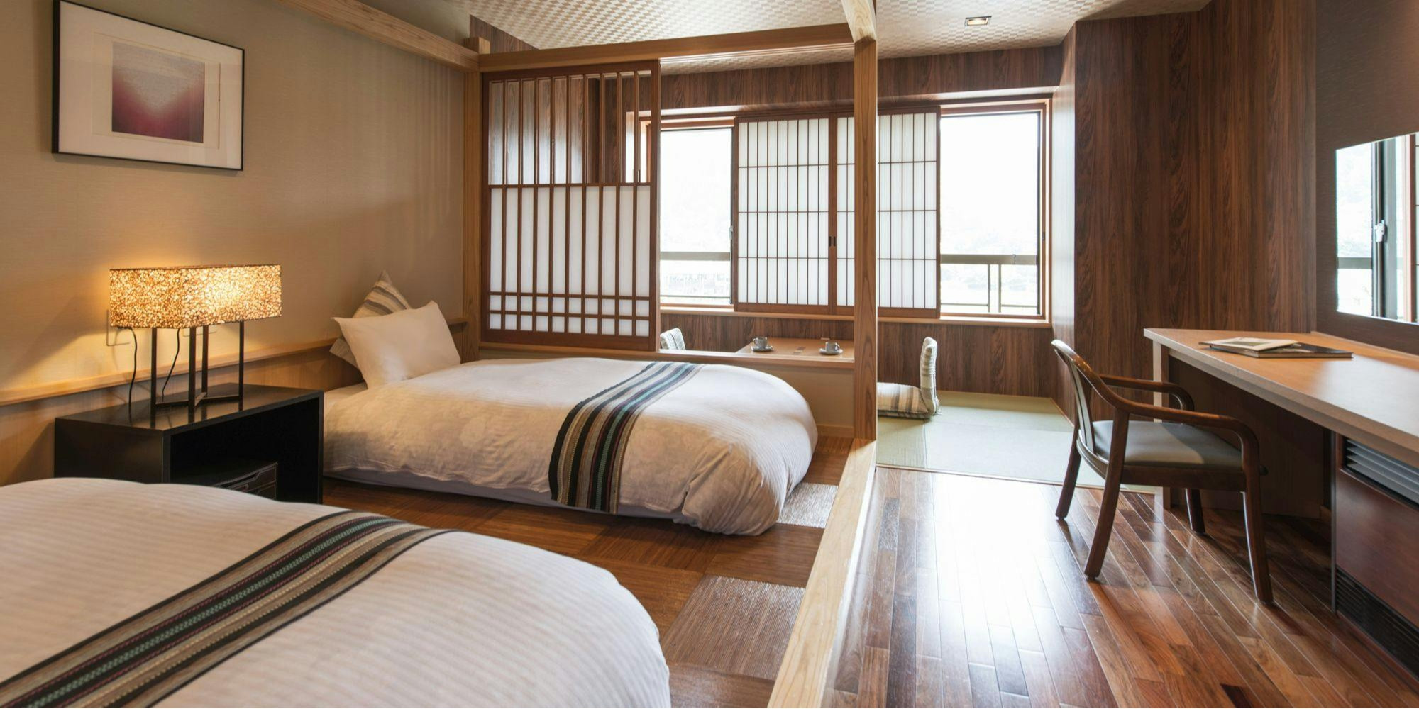 5階に位置し、和のなごみとベッドの安らぎが融合されたお部屋。