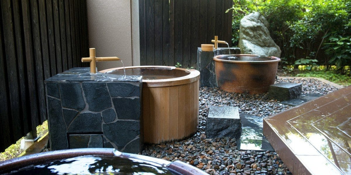 大浴場「離塵」に併設された3つのおひとり様用露天風呂。