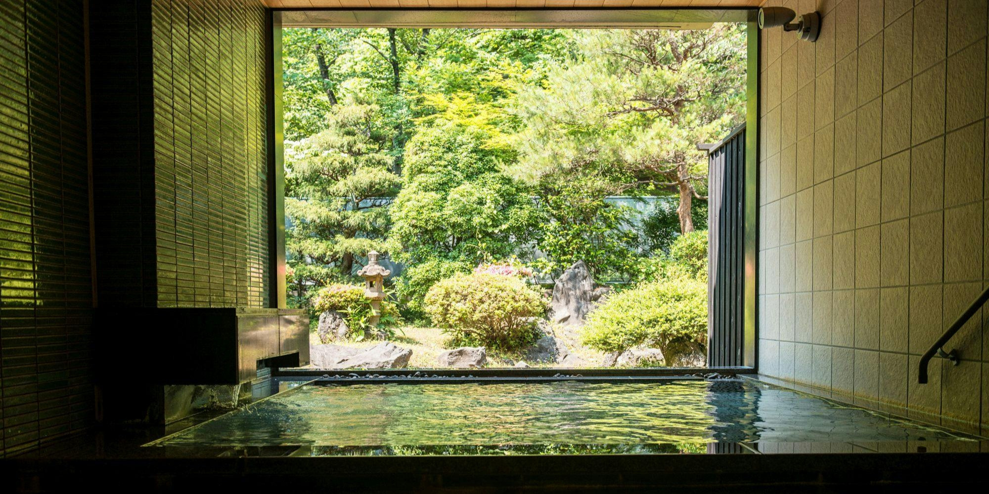 半露天風呂タイプで四季の庭園を眺めながらゆっくりとお風呂を満喫いただけます。