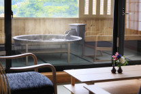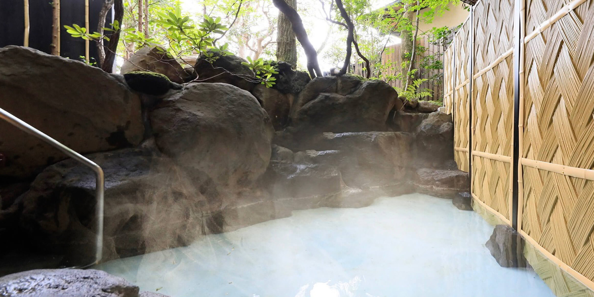源泉からやや離れた位置にあり、その距離によってじっくりと熟成され、泉質はそのままにまろやかで優しいお湯になります。