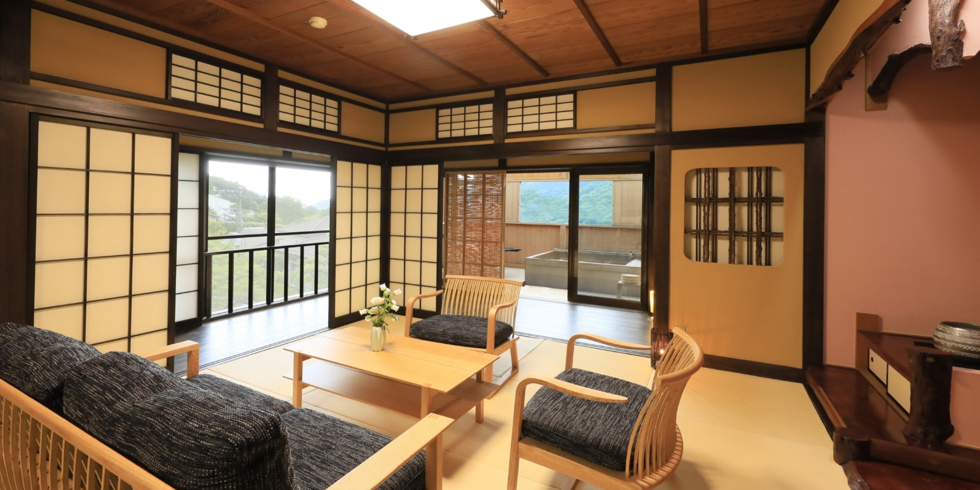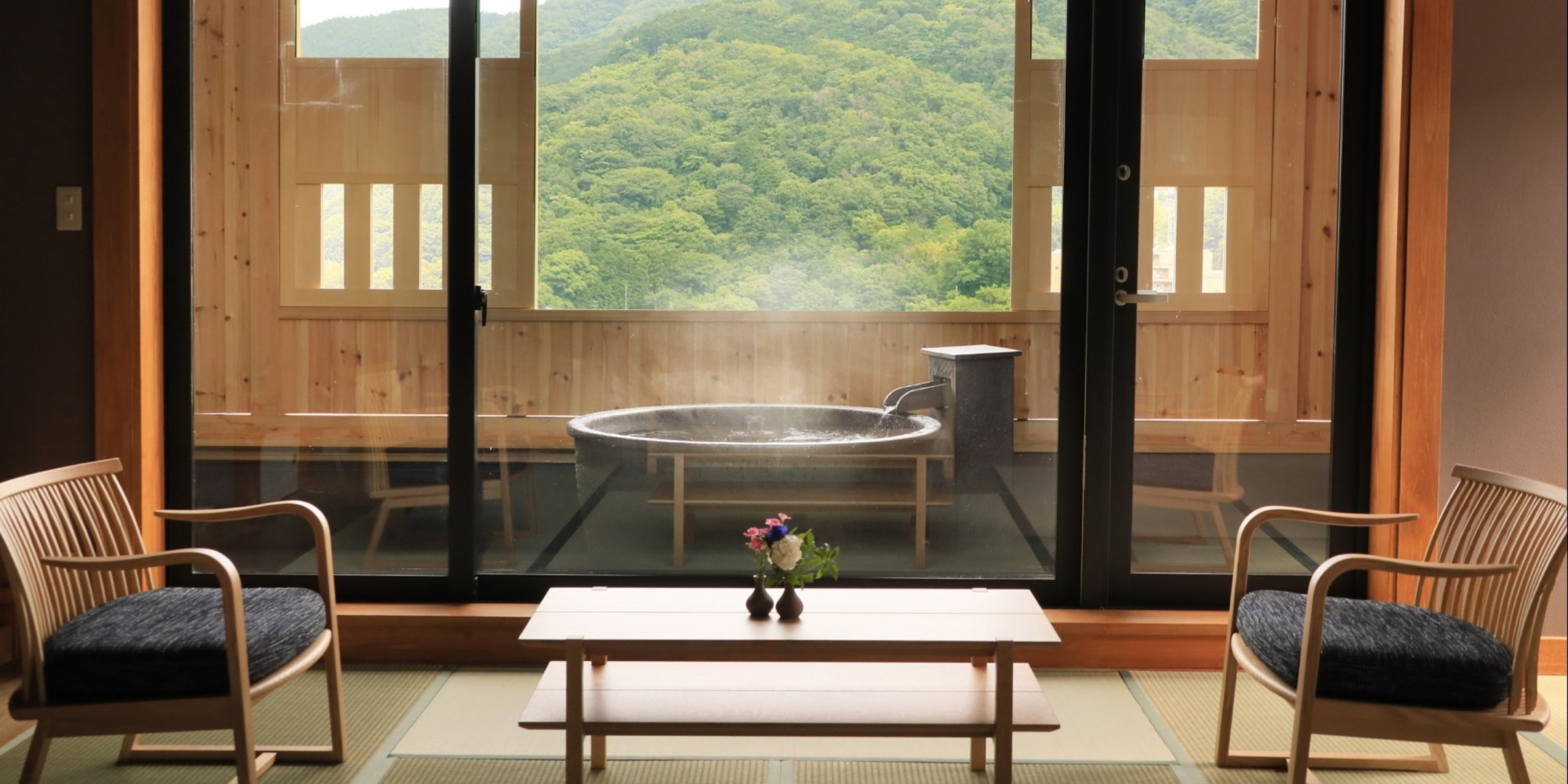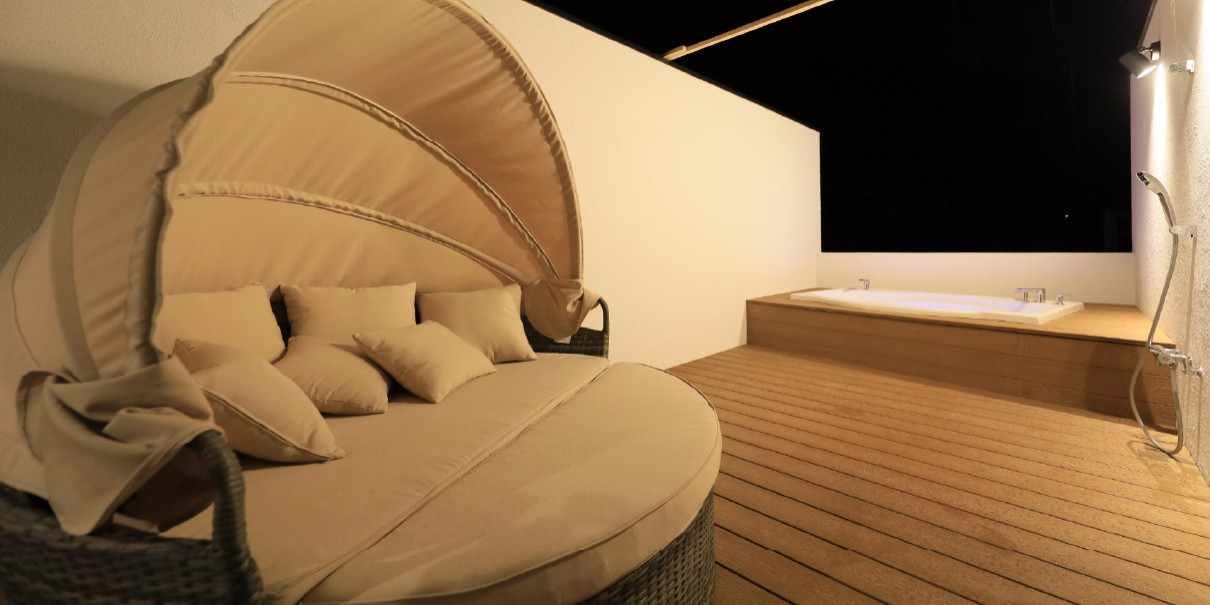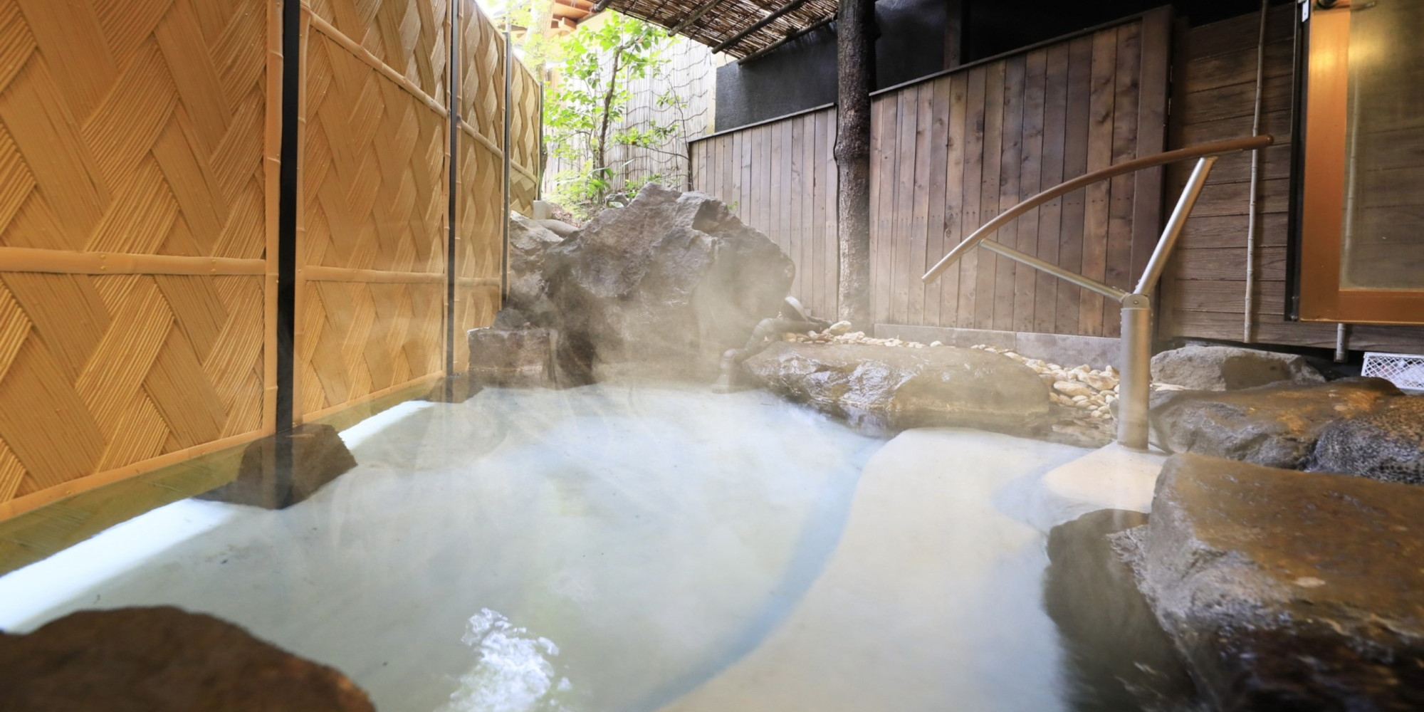 貸切露天は事前予約サービス(モバイルオーダー)にてご予約が可能です。(1組様45分/3,300円) お部屋・お食事