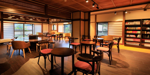 カフェ&ライブラリーには懐かしいコミックスをはじめとした多数の書籍。