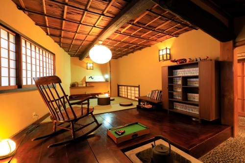 昔遊びができるおもちゃや本があり、また想い出ノートで旅の思い出をつづっていただけます。