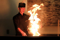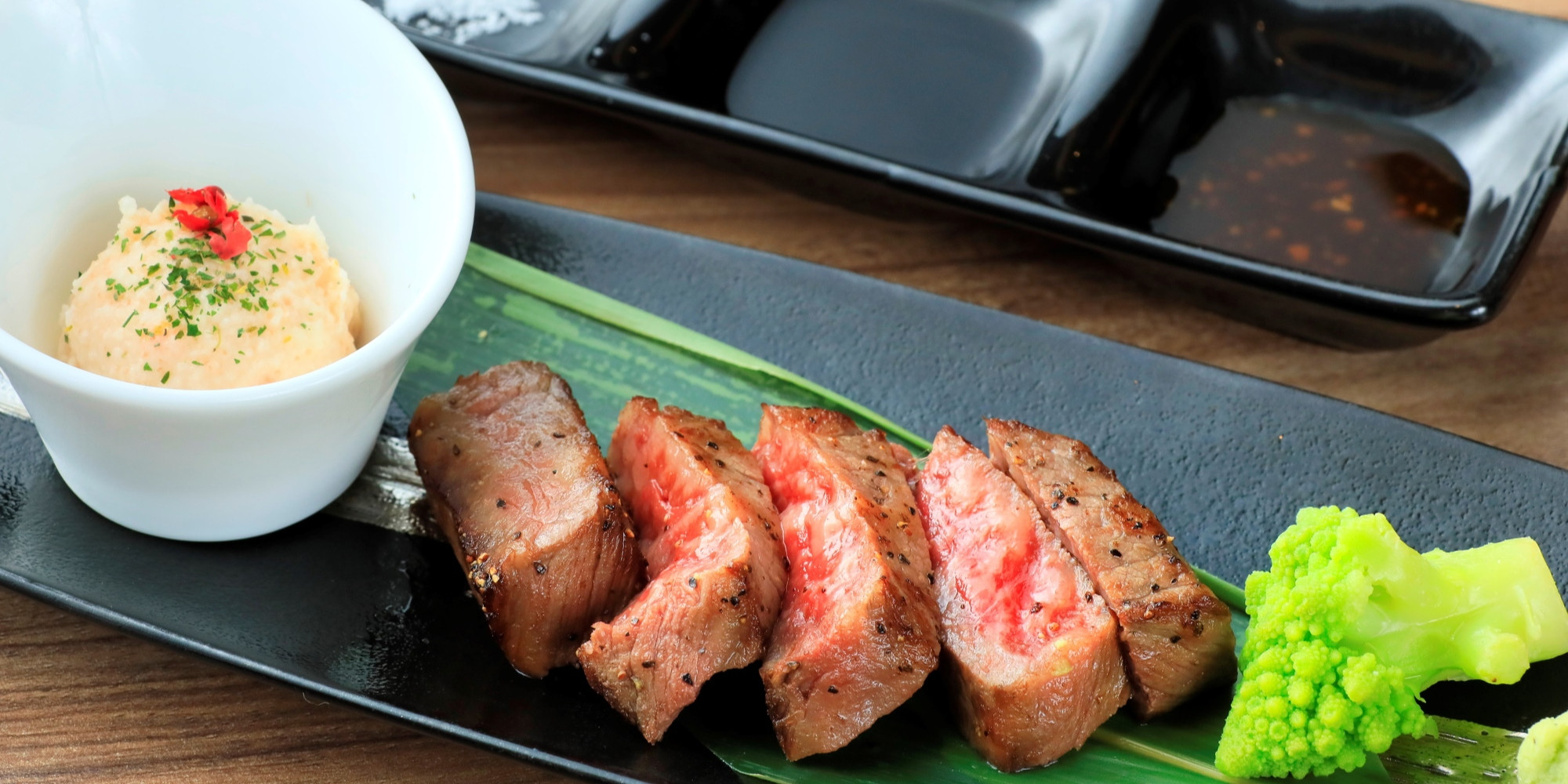 メインのステーキはレストラン併設のライブキッチンで焼き上げており、鉄板から繰り出される音や香りがお客様の五感を刺激。