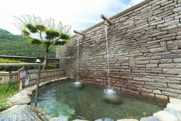 温泉から上がられる前にこの小ぶりの湯船のぬるめのお湯につかってみてください。