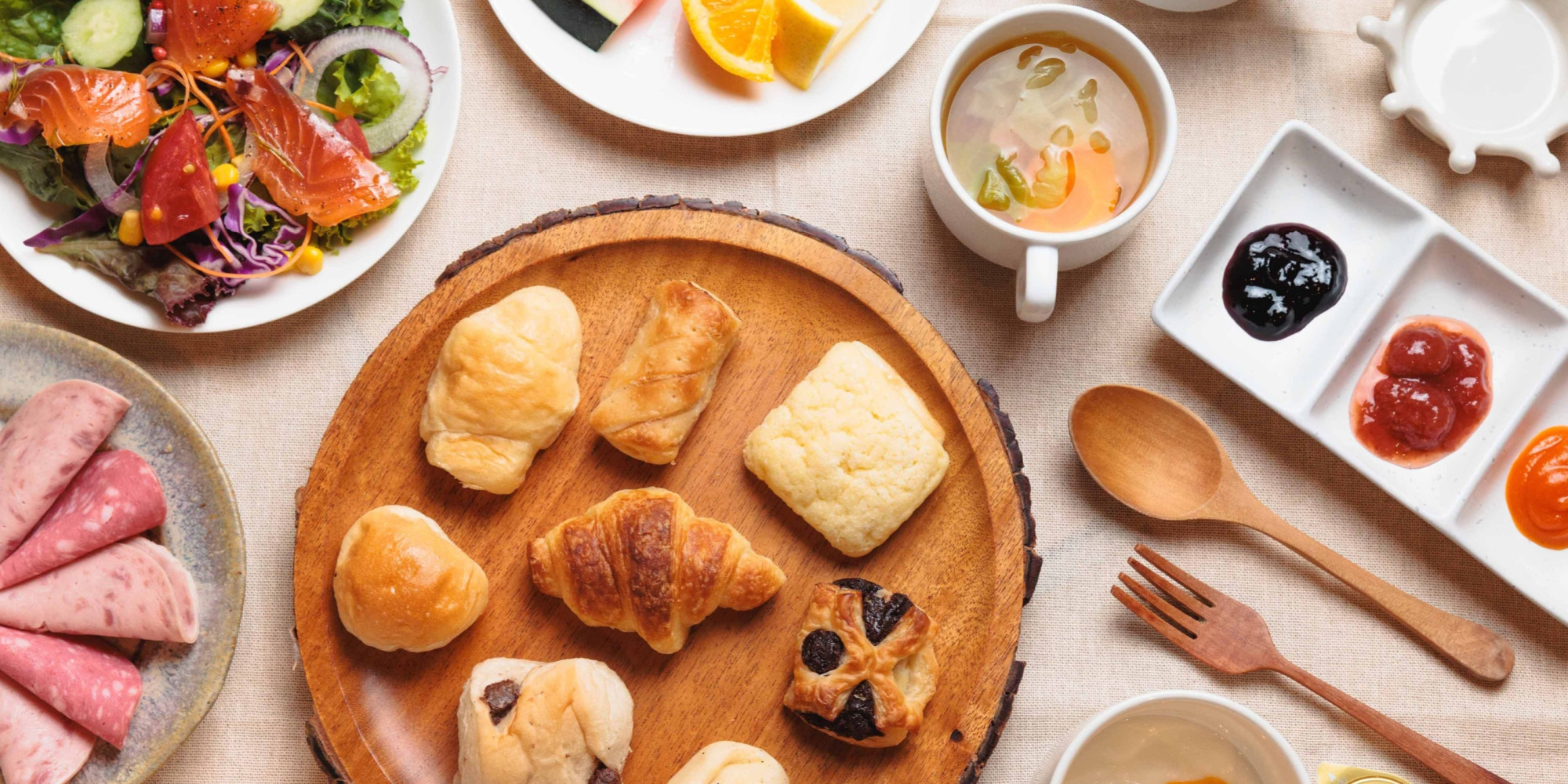 富良野名物「オムカレー」やオリジナル「ふらのハンバーガー」を朝食でご提供。