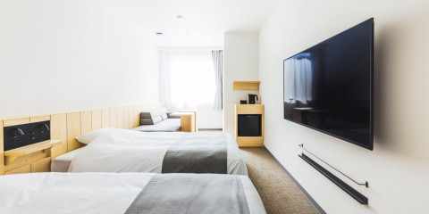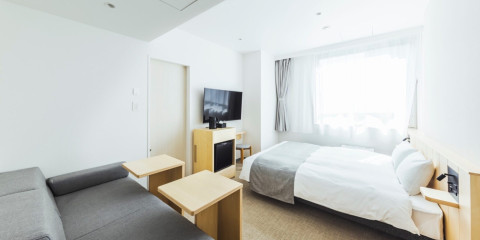 ベッド幅120cmのツインルーム。セパレート型ユニットバス付き。広々ソファはベッドにもなり、最大3名での宿泊も可能。