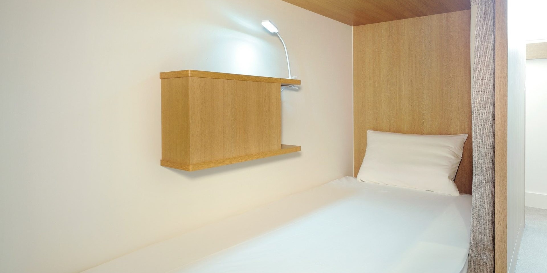 各ベッドにはコンセント付きセーフティボックスが備え付けられており、携帯電話やノートパソコンを充電したまま施錠できます。