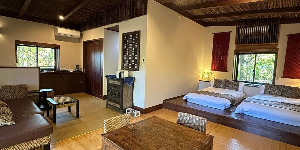 【一棟貸】半露天風呂付■離れ家リスの庭■南国ヴィラ■56平米
