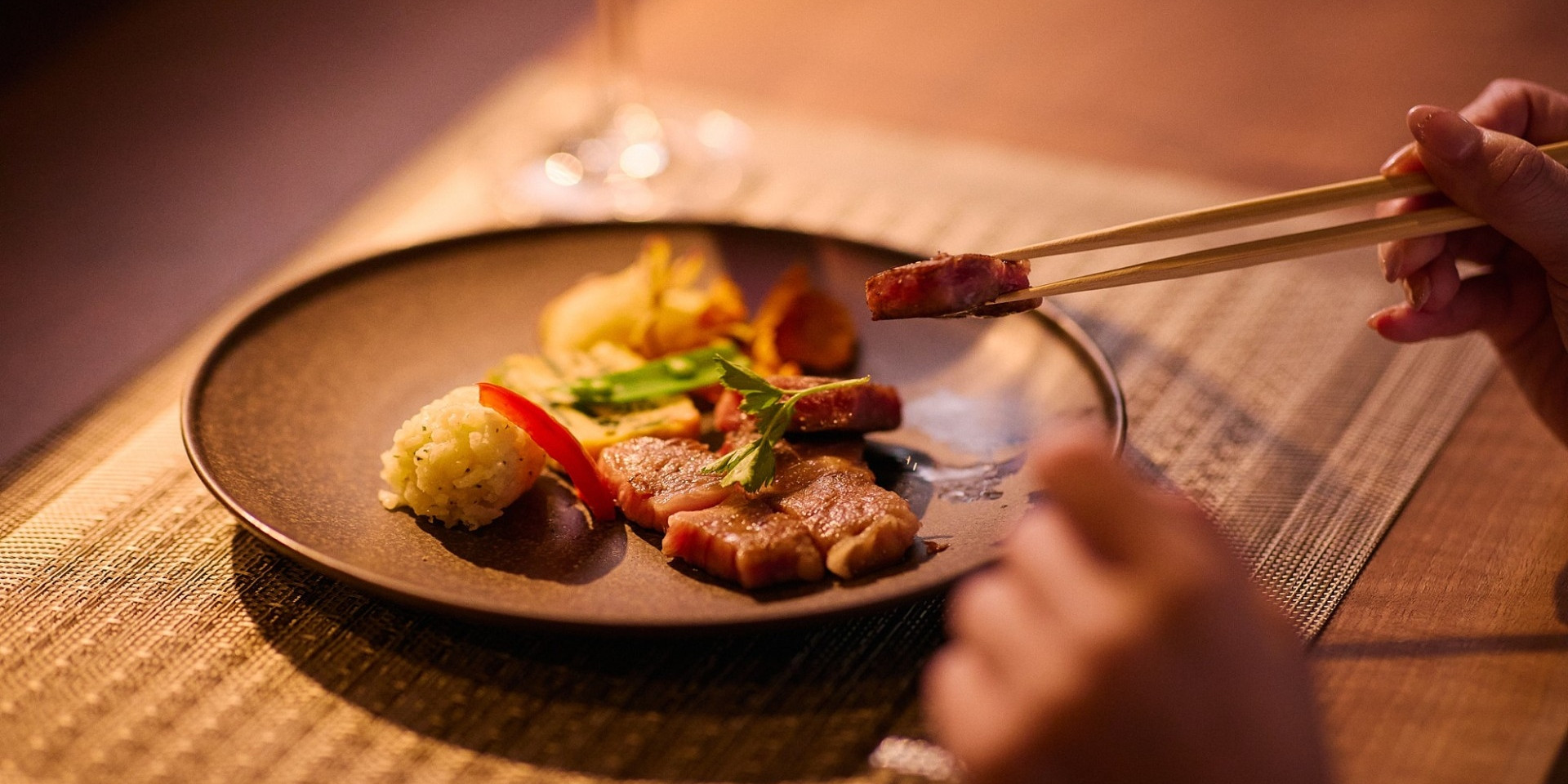 ライブキッチンから提供される鉄板料理を愉しめるレストラン。大人の宿ならではのディナータイムをご堪能ください。