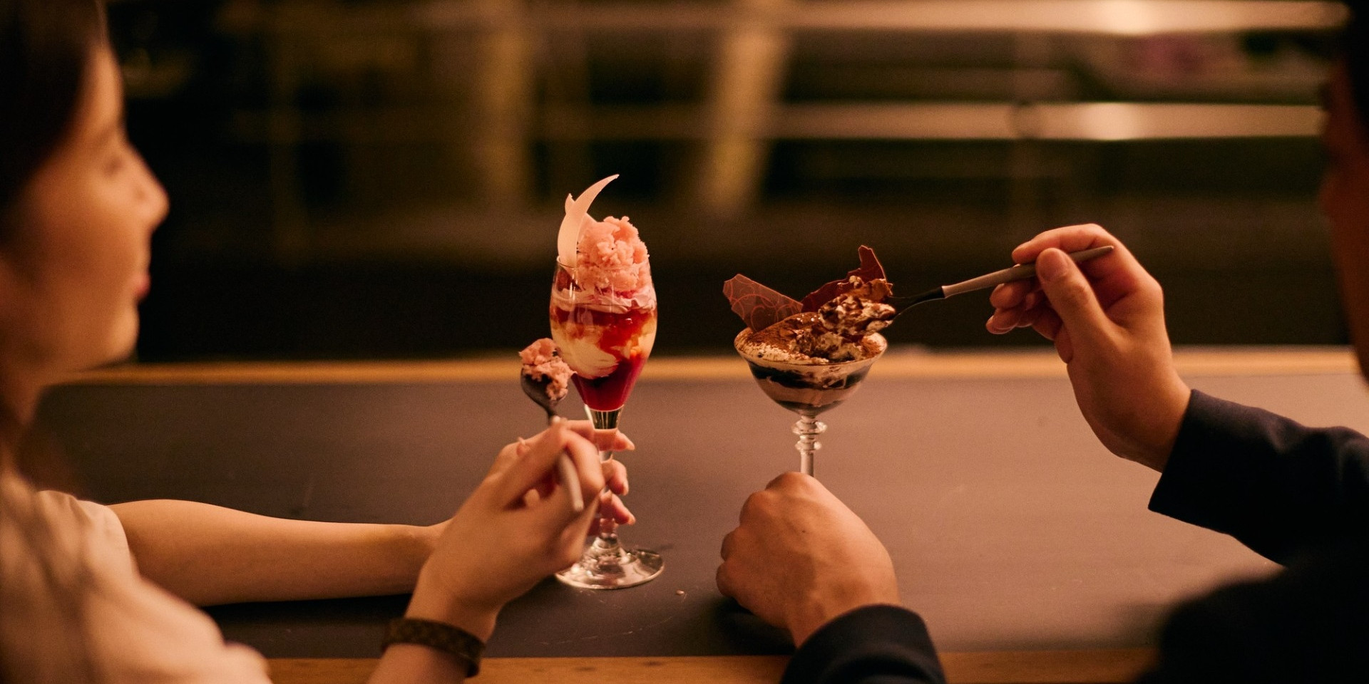 夕食は東北の食材を使用した目でも愉しめる創作和洋会席をご用意いたします。食後はバーラウンジにて〆パフェをお召し上がりください。