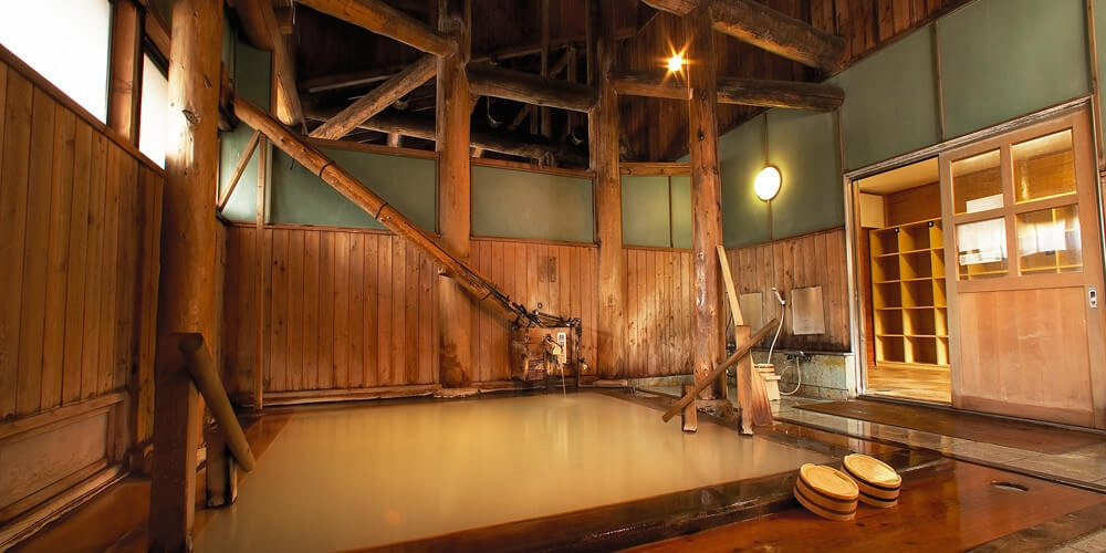 一日で540万リットルに達する豊かな湯量と80度の高温を保つ源泉、乳白色の硫黄泉「白鐵の湯(はくてつのゆ)」。