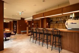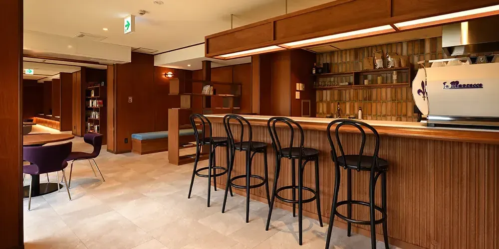 明るい陽射しが差し込むカフェラウンジでは、カウンター席、テーブル席、個室席とお好きな