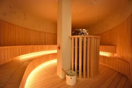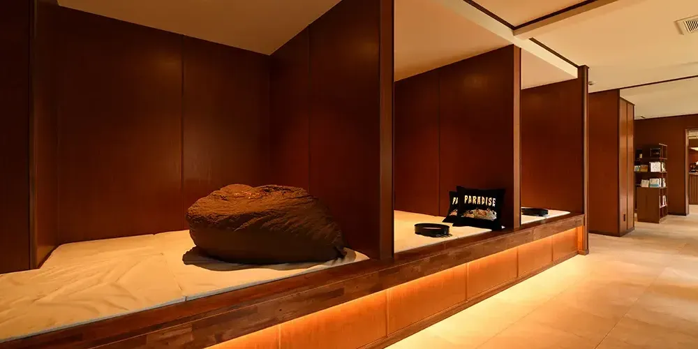 万物の陰陽を表す「太極図」をモチーフとした2つのサウナは、勾玉の白円、黒円部分にIKIストーブを設置しておりセルフロウリュウもお楽しみいただけます。