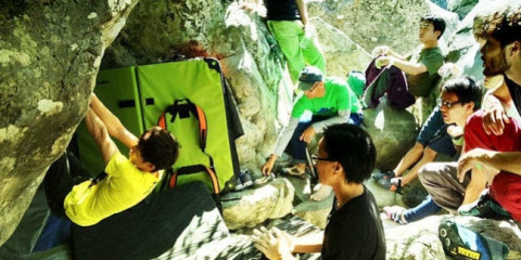 すぐ近くにボルダリングのエリアもあり、シーズンにはたくさんのクライマーが集います。