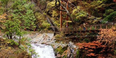 大小の滝がおりなす渓谷美、紅葉の名所としても有名です。遊歩道は洞川温泉までつづきます。