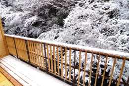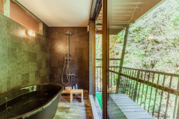 世界遺産登録10周年の2014年7月に完成した川床デッキつき客室「かふう」「みずまり」です。
