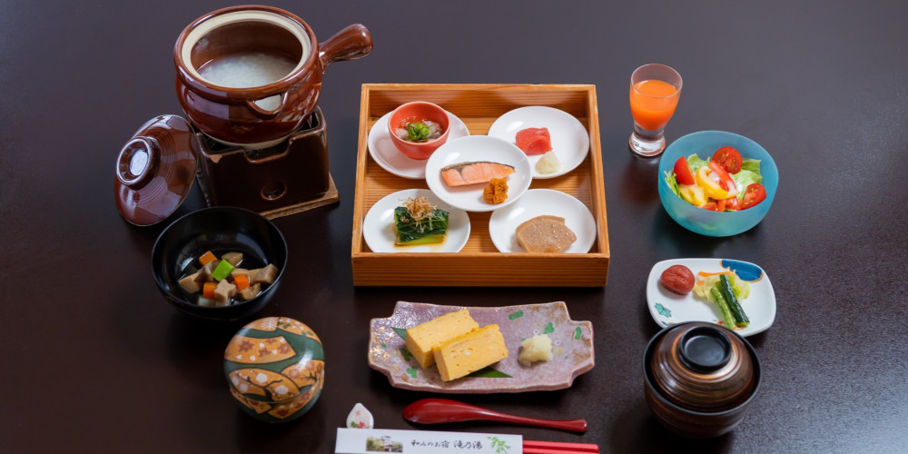 グリーンシーズンの滝乃湯名物のご朝食です。