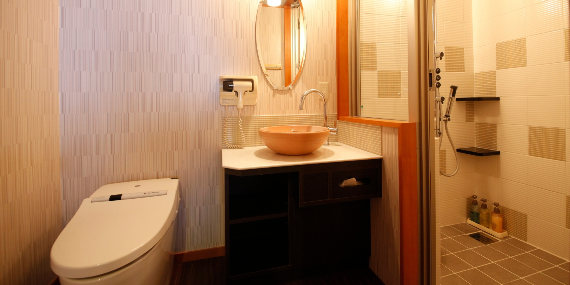 洗浄器付トイレが2箇所あり、展望浴場とは別にユニットバスも併設。
