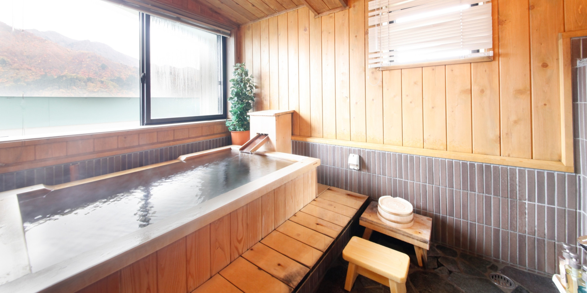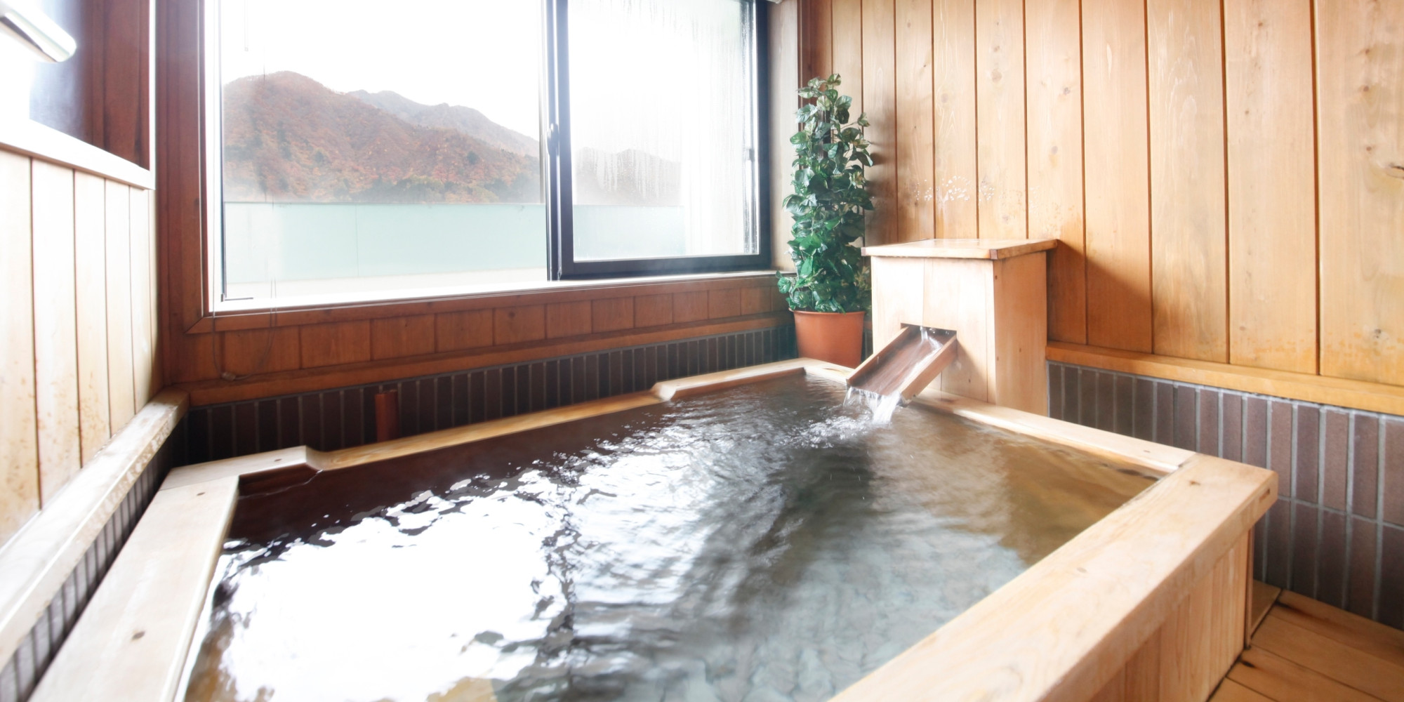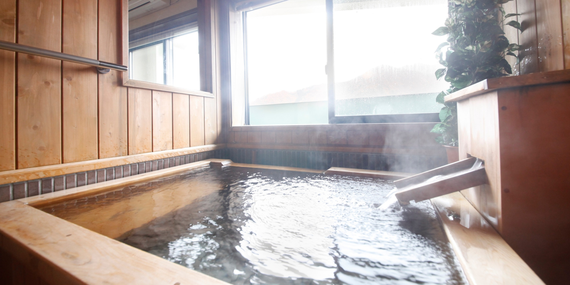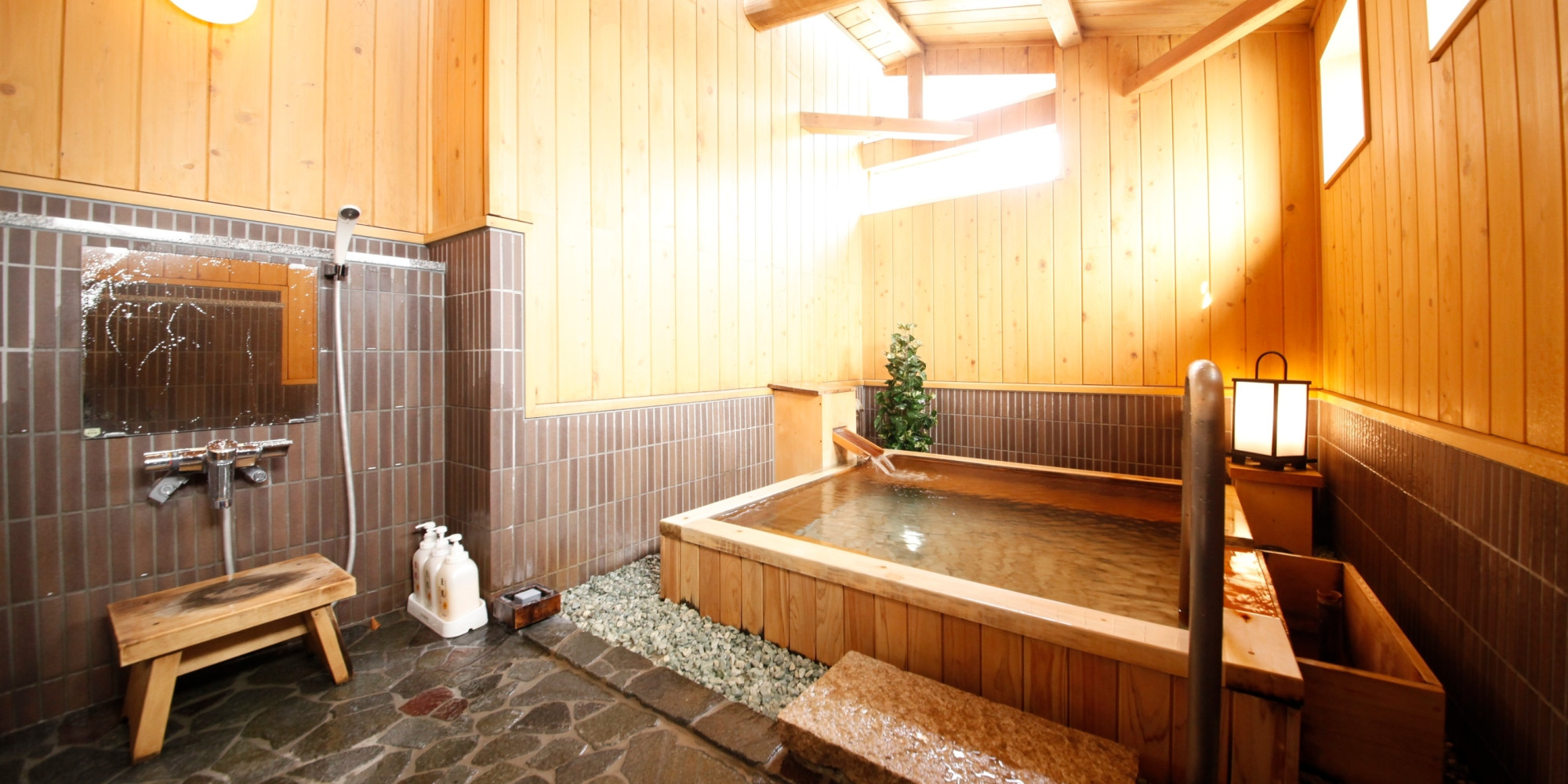 源泉かけ流しの湯が注ぐ、檜の香りが心地良い貸切風呂です。