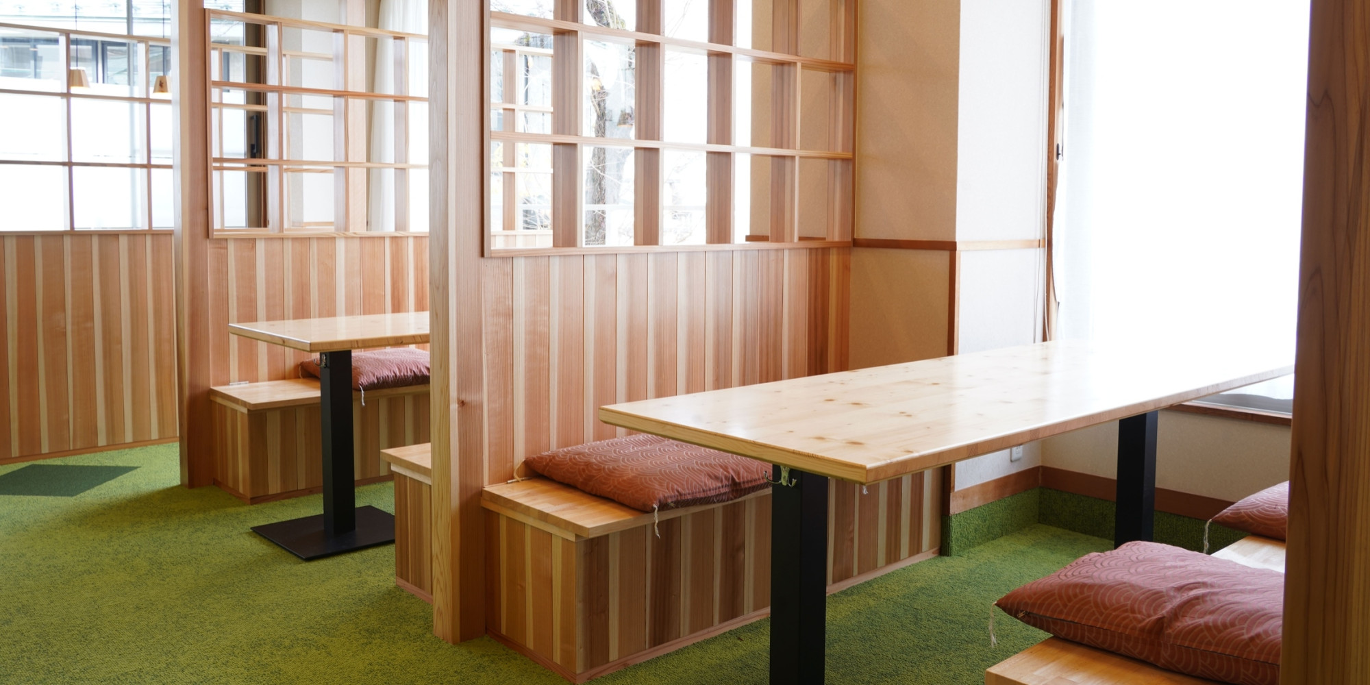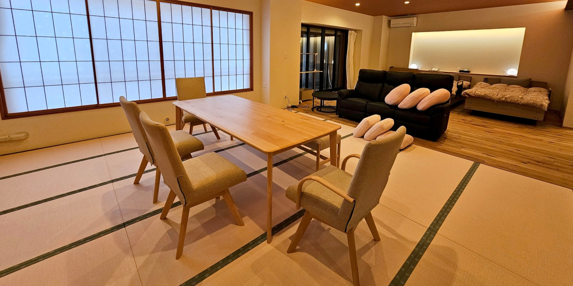 高座テーブル&チェアをご用意。車椅子のまま畳にあがることができます。