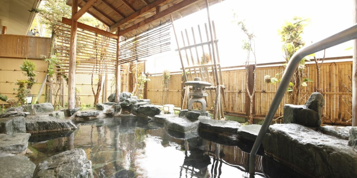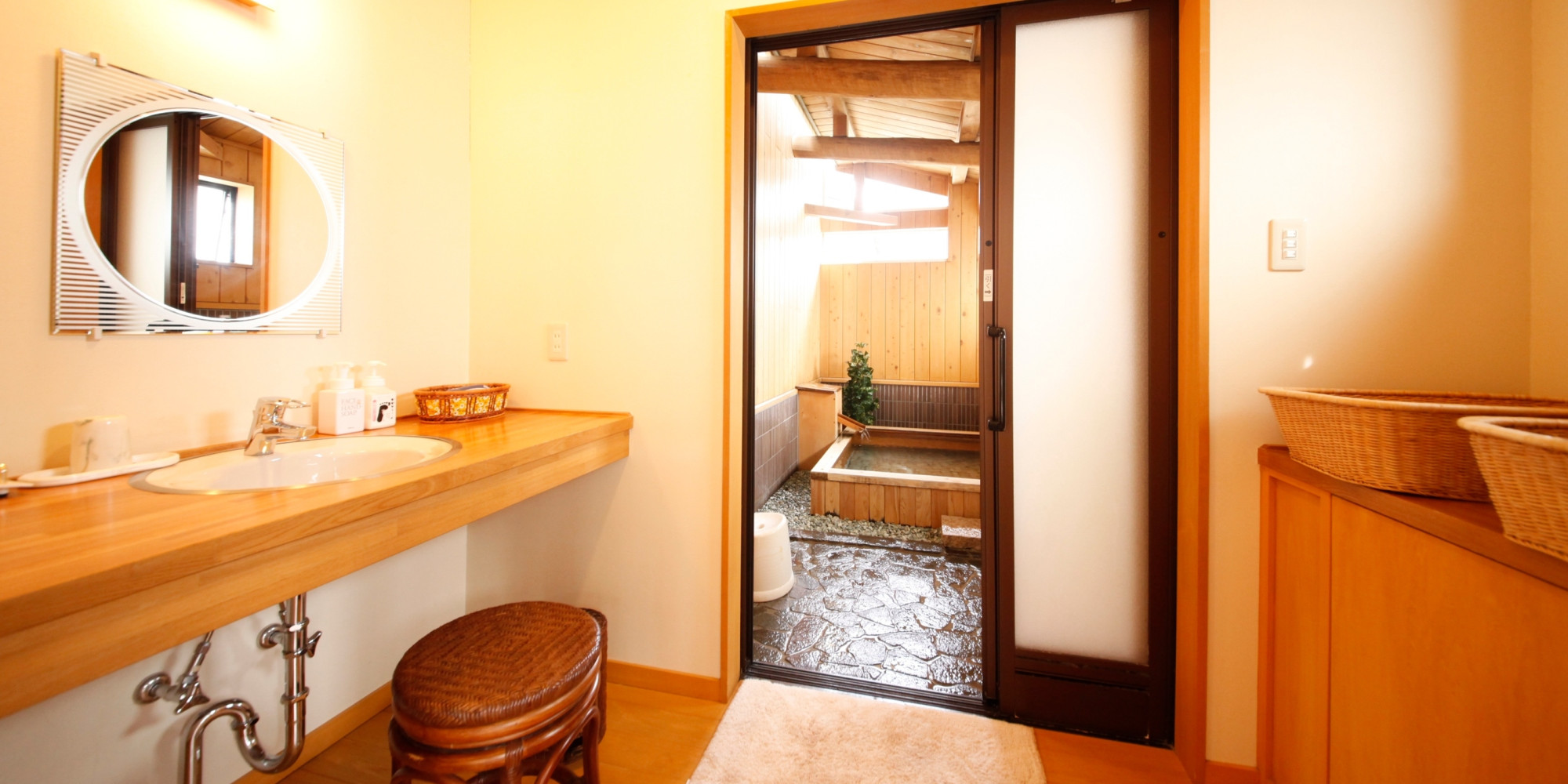 お客様水入らずでお気兼ねなく温泉を楽しめる、プライベートな半露天です。