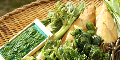 旬の素材に恵まれ、地元の山菜や野菜なども新鮮なまま、真心こめて調理いたしております。