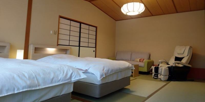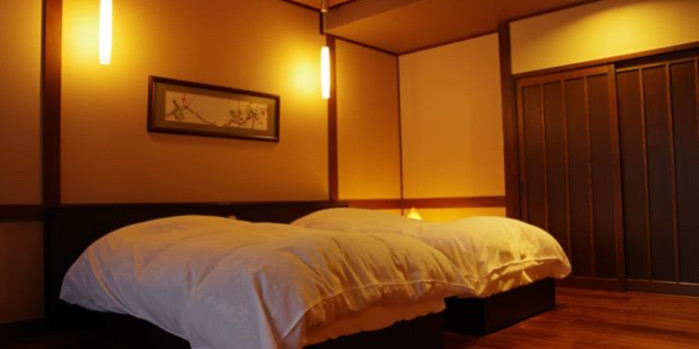 ~和風ツインベッドに専用マッサージ機をご用意した、「癒し寛ぎ」がテーマのお部屋。~
