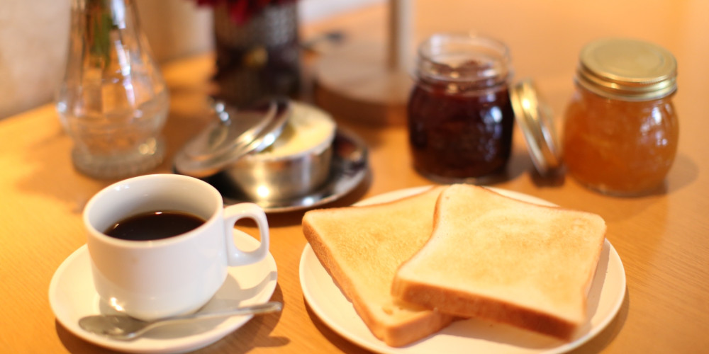 食パンをトースターでお好きな加減で焼いていただき、お好きなバターやジャムを付けてお召し上がりください。