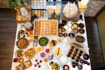 朝食は、地元の新鮮な食材を使用した地産地消ビュッフェをご提供しています。旬の食材をふんだんに使った料理をお楽しみいただけ、健康的で美味しい朝食で一日を元気にスタートできます。