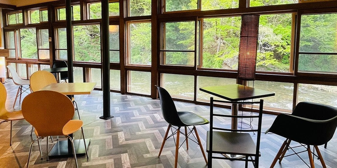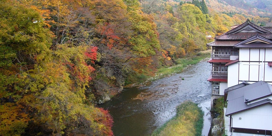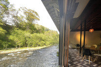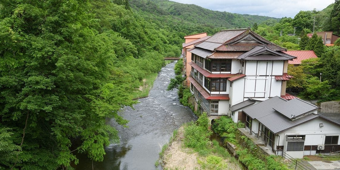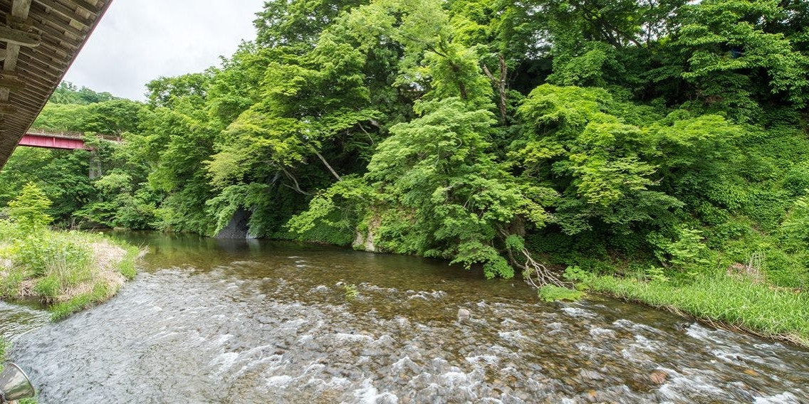 現在では建築する事が困難な清流「豊沢川」に迫り出すように建設されたロケーション。