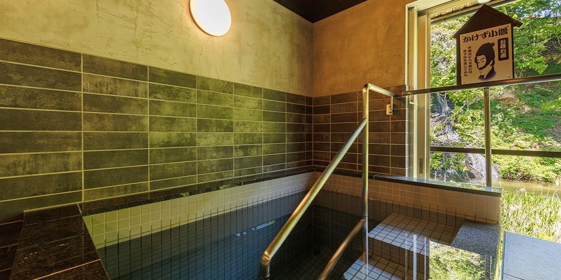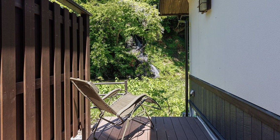 当館名物、日本一深い自噴天然岩風呂「白猿の湯」の平均深度と同様の1.25mの立って入る水風呂や、豊沢川と白糸の滝を眺めながら外気浴を愉しめます。