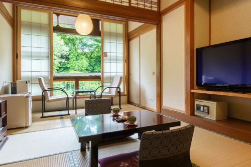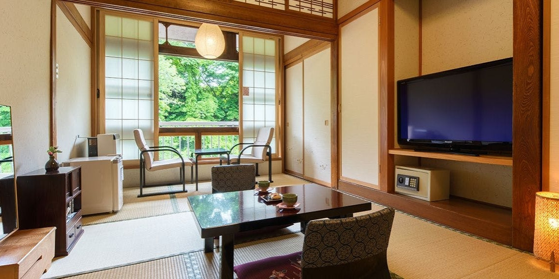 2面の窓から渓流を 和室8帖 + 6帖角部屋(トイレ洗面なし)(本館)