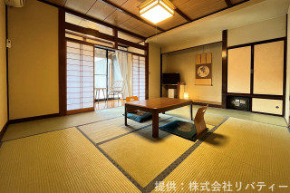 庭園と山の景色、川のせせらぎが楽しめる1番人気のお部屋です。