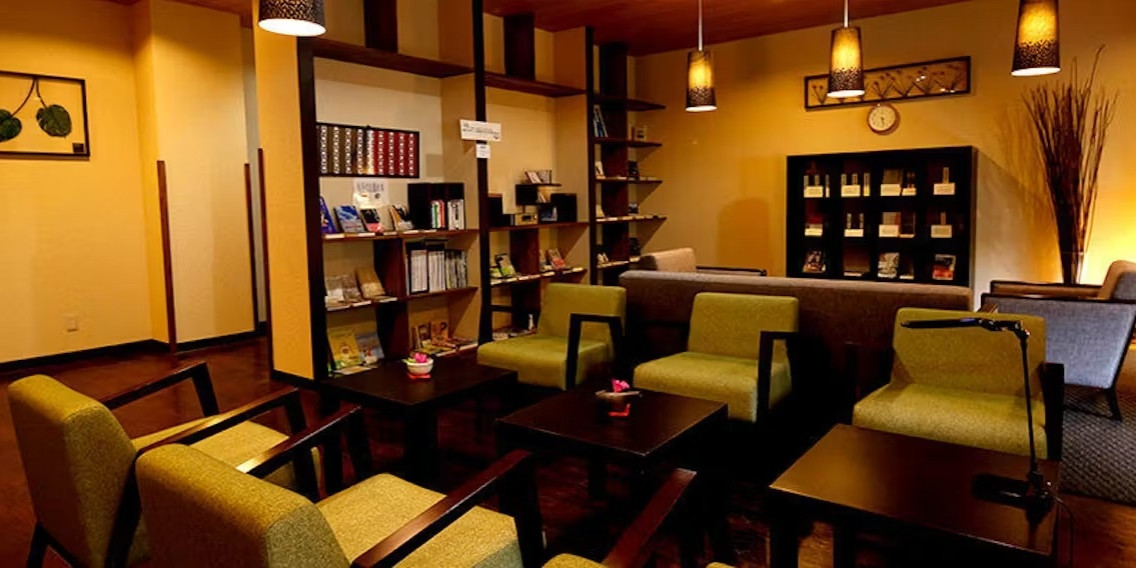 お食事や温泉の合間のひと時に、旅の想いや湯河原というこの地と触れあっていただければ、という思いでライブラリー「湯楽文庫」をオープンいたしました。
